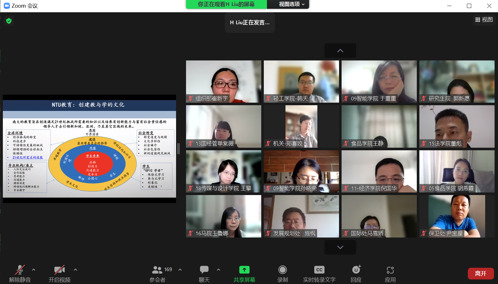 6月15日,学校召开2022年干部治理能力提升系列培训新加坡南洋理工大学第3次专场培训、党委理论学习中心组(扩大)会,邀请新加坡南洋理工大学协理副校长刘宏教授分享学科建设与学院管理等经验。校领导、全体中层干部线上参会。会议由学校党委副书记王伟主持。