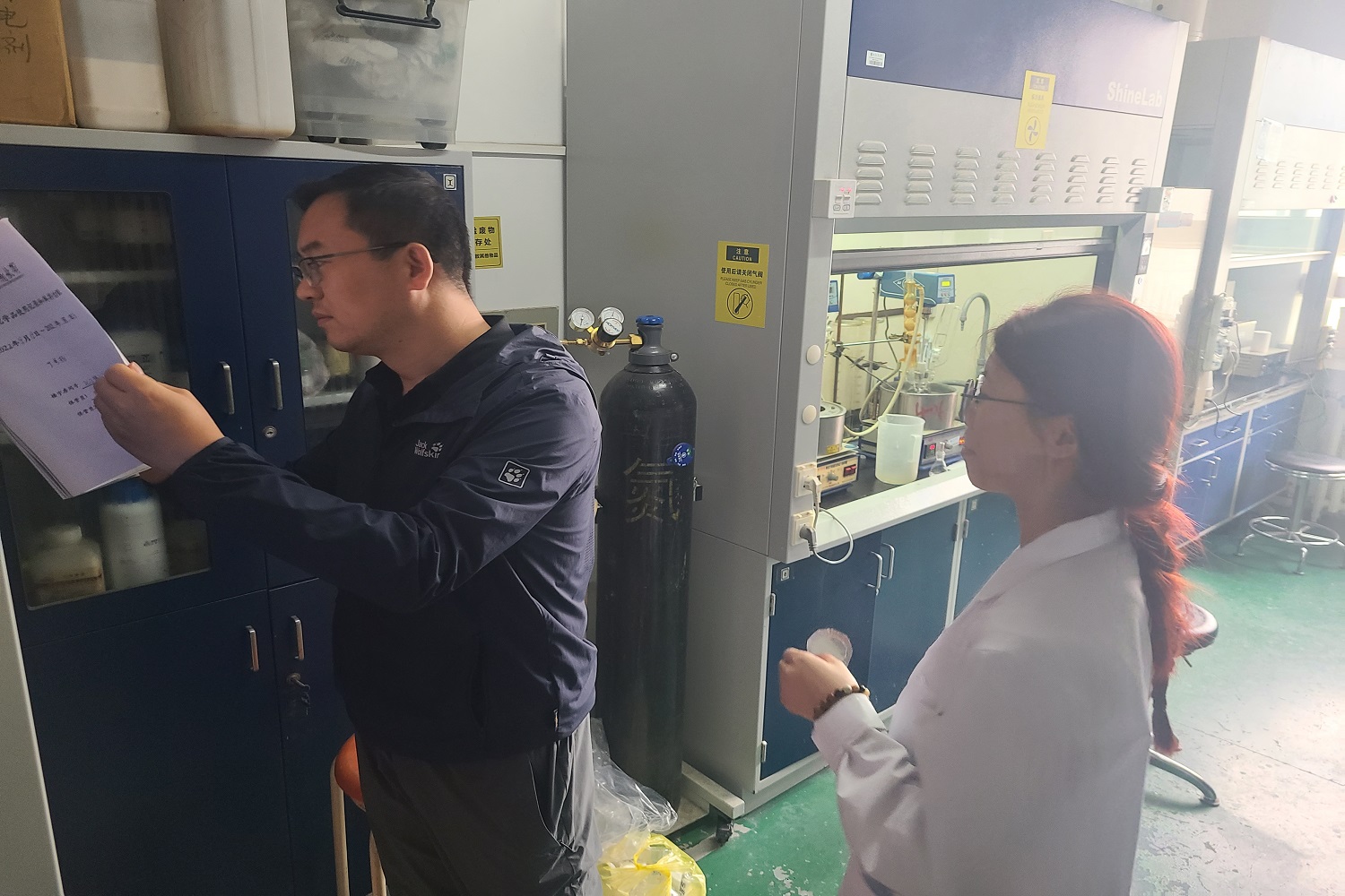 检查组依次前往彤程楼、耕耘楼、高精尖创新中心等实验楼和学校易制爆危险化学品储存室,进行实地检查。对危险化学品管理、危险废物管理、实验室内务管理等方面进行了重点检查,同时针对之前发现的问题整改情况进行了复查。检查过程中,检查组不时询问实验人员实验室安全管理情况,并提醒师生做好节日期间实验室安全工作。