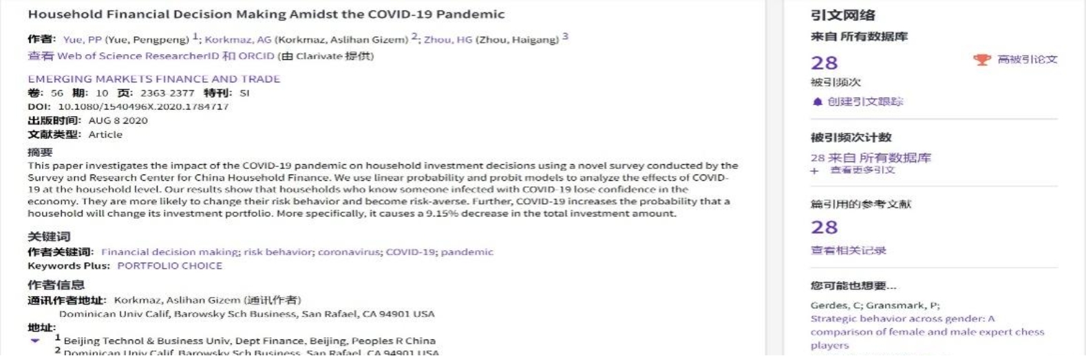 学院以制度化的方式,从学术交流、论文发表等多方面为青年教师提供支持。截至目前,2021年“鲲鹏计划”已培育发表A类论文50余篇,青年教师岳鹏鹏博士以色情片为第一单位发表在Emerging Markets Finance and Trade期刊上的论文成功入选Economics & Business领域全球前1%ESI高被引论文。