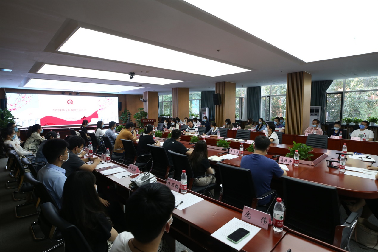 9月16日下午,学校在阜成路校区召开2022年新入职教职工座谈会,2022年新入职教职工代表共32人参会。学校党委常委、副校长刘敏华出席并主持座谈会。