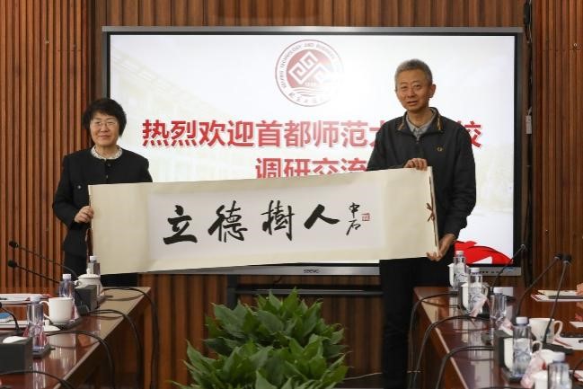 3月20日,首都师范大学党委书记曹文军一行到我校良乡校区调研座谈。首都师范大学党委副书记孙晓峰、王大广,党委常委、纪委书记王玮陪同调研。我校党委书记沈千帆、党委副书记李中奇,党委常委、副校长寇红江出席调研座谈。两校相关职能部门负责人参加调研交流。座谈会由李中奇主持。