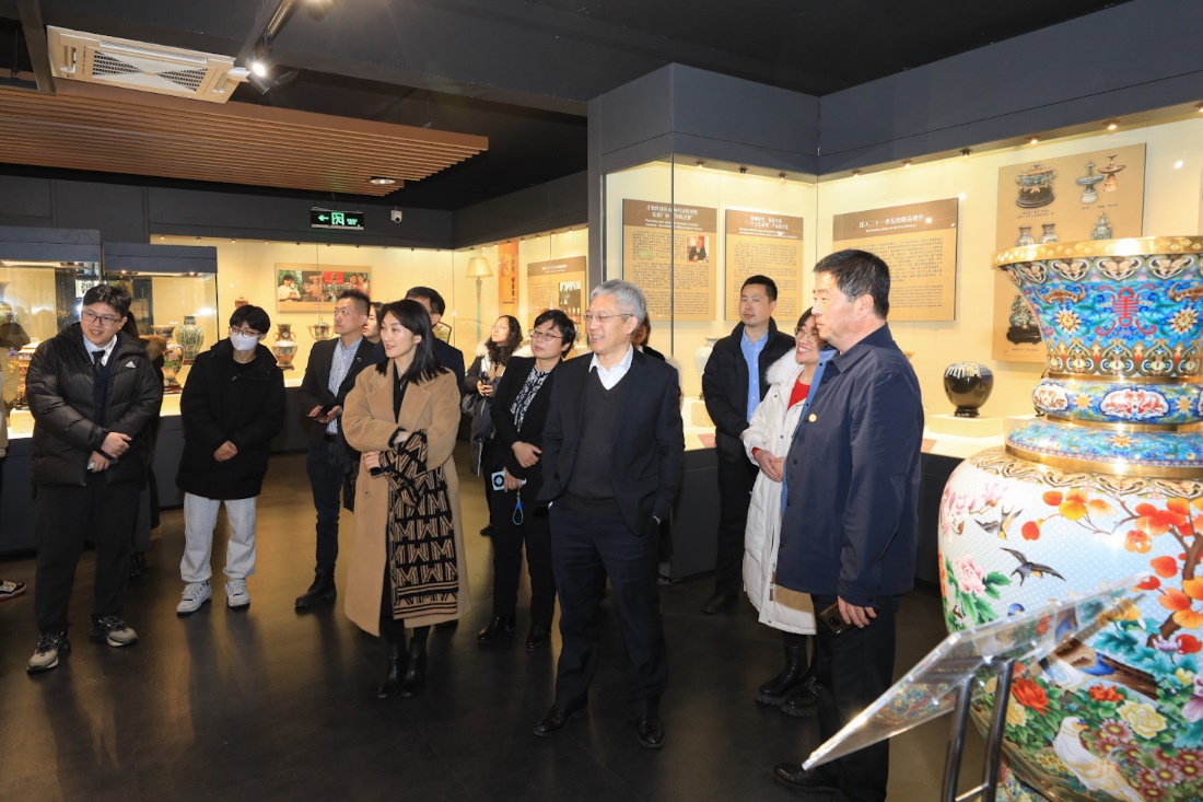 签约仪式结束后,李中奇一行在谢燕华的陪同下,参观中国景泰蓝博物馆和生产车间,深度了解景泰蓝发展历史和制作工艺。李中奇在参观中指出,作为旧时宫廷独享的景泰蓝,历经沧桑变革,成为中华民族优秀传统文化的靓丽名片。他鼓励同学们通过了解景泰蓝的发展历史,探求中华文明的真谛,体悟实践育人内涵,坚定对中华优秀传统文化、对国家和民族未来的信心。