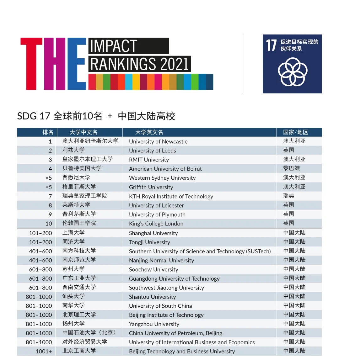 我校登上泰晤士高等教育2021年世界大学影响力排名榜