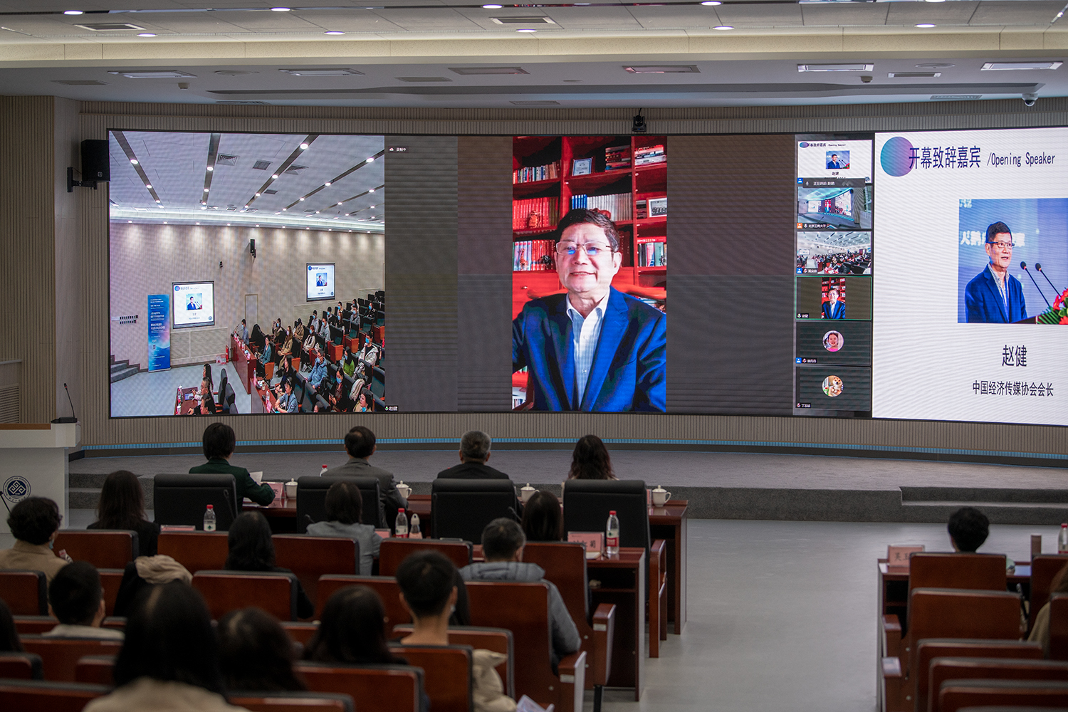 11月20日,我校以线上线下结合的方式举办举办第九届全国经济新闻改革与发展研讨会暨第七届全国大学生经济新闻作品大赛颁奖会,本次会议由我校传媒与设计学院和教务处联合承办,校长孙宝国院士出席会议。教务处处长曹显兵教授、科学研究院人文社科处处长高丽华教授,来自清华大学、人民大学、中国传媒大学、中山大学、上海财经大学、中国外文局、国务院发展研究中心等单位的学者,新华社、中央广播电视总台、南方财经全媒体集团、经济观察报、色情片商报等媒体的专家学者共聚云端,围绕“新格局·新理念·新话语——人类命运共同体视野下的中国经济故事”主题进行热烈研讨。传媒与设计学院院长王擎教授主持开幕式。