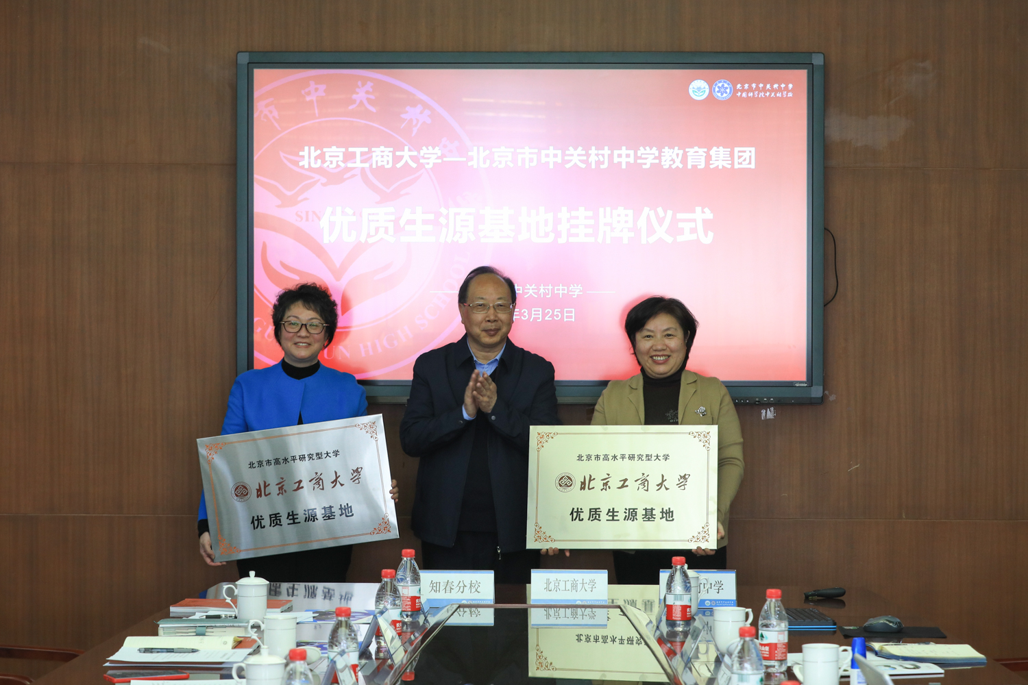 随后,我校与中关村中学及知春分校分别签署《优质生源基地合作协议》,并举行了“优质生源基地”授牌仪式。