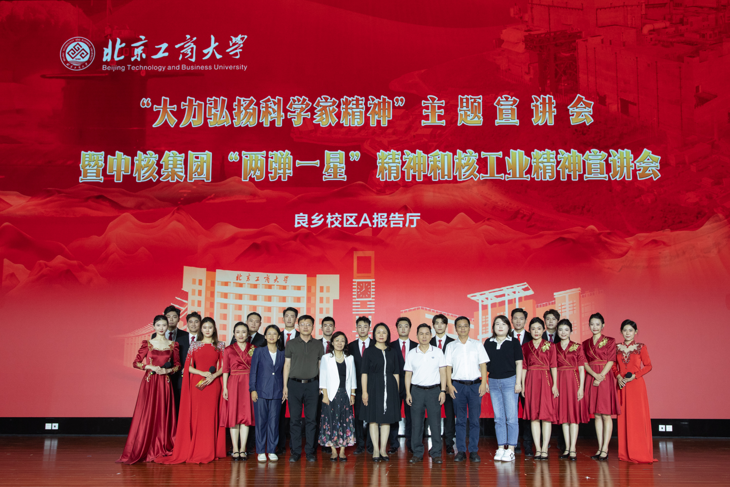 会后,学校领导与中核集团新时代核工业精神宣讲团领导及成员上台合影留念。