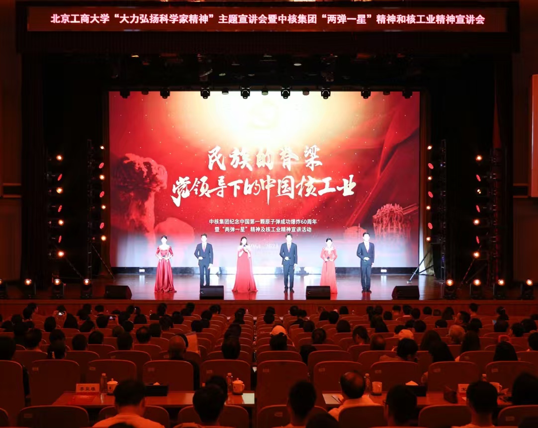 黄先开向中核集团宣讲团的到来表示热烈的欢迎和衷心的感谢。他谈到,科学成就离不开精神支撑,科学家精神是科技工作者在长期科学实践中积累的宝贵精神财富,此次携手中核集团举办宣讲会,是对教育、科技、人才一体化推进的生动实践和具体诠释。他希望老师们将教育家精神、科学家精神和工匠精神融合,以做好“四有好老师”和“四个引路人”的责任担当,为社会培养更多堪当大任的时代新人,希望全体北工商学子坚定理想信念,传承科学家精神,成长为堪当强国建设、民族复兴大任的栋梁之材。