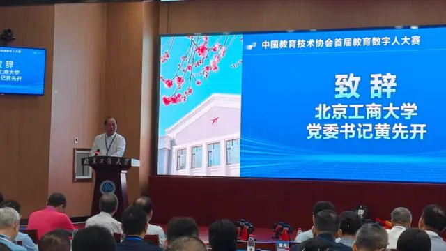 学校党委书记黄先开在代表承办方致辞中表示,在第40个教师节即将来临之际,学校承办首届教育数字人大赛具有重要意义,并向各位领导、嘉宾和专家学者、参赛代表表示诚挚欢迎和感谢。他指出,当前正在深入学习贯彻党的二十届三中全会精神,近年来北工商深入推进教育数字化转型,作为全面建设高水平研究型大学、创建“双一流”学科的战略路径,有力推动全方位综合改革,积极探索数智赋能教育教学,推进“人工智能+课程建设”等。此次承办大赛正是聚焦教育数字化转型领域热点问题,鼓励广大师生运用数字技术,创新教育教学模式,提升教育质量的具体举措。大赛既是参赛选手们展示才华的舞台,也是互相交流学习的平台,希望在共同努力下多方携手共进,为培养更多数智时代具有创新精神和实践能力的拔尖创新人才凝聚共识,让创新成为推动教育改革发展的强大动力,并预祝大赛圆满成功。