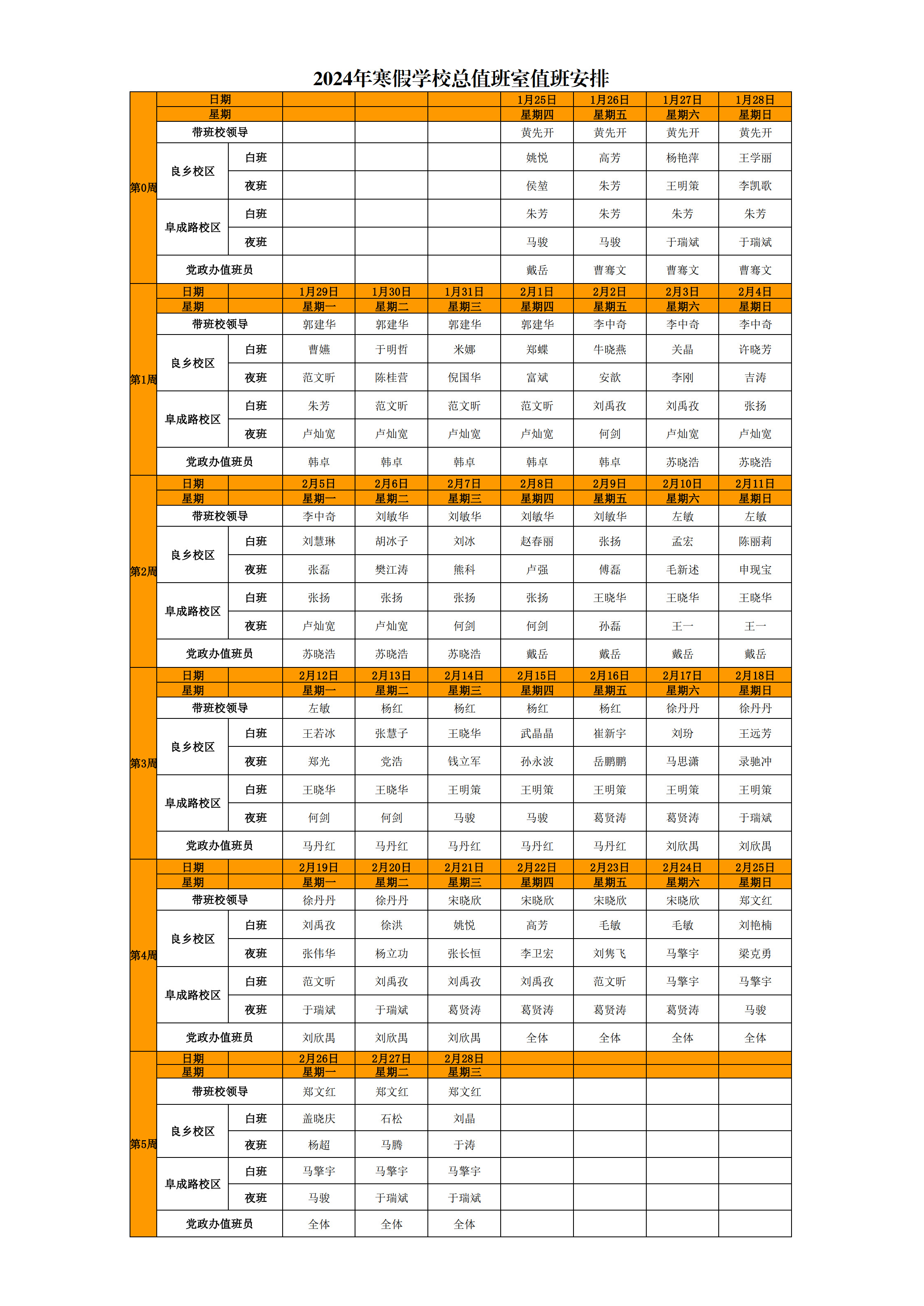 2024寒假值班安排