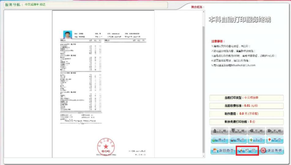 每人在校期间可以免费打印中文成绩单、英文成绩单、中文在读证明、英文在读证明各10份,其他证明材料各免费打印5份,超出部分按5元/份收费。