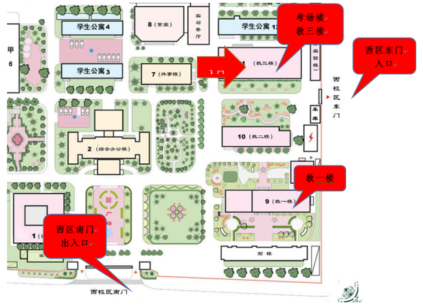 3.校外考生于阜成路校区西区南门出入。
