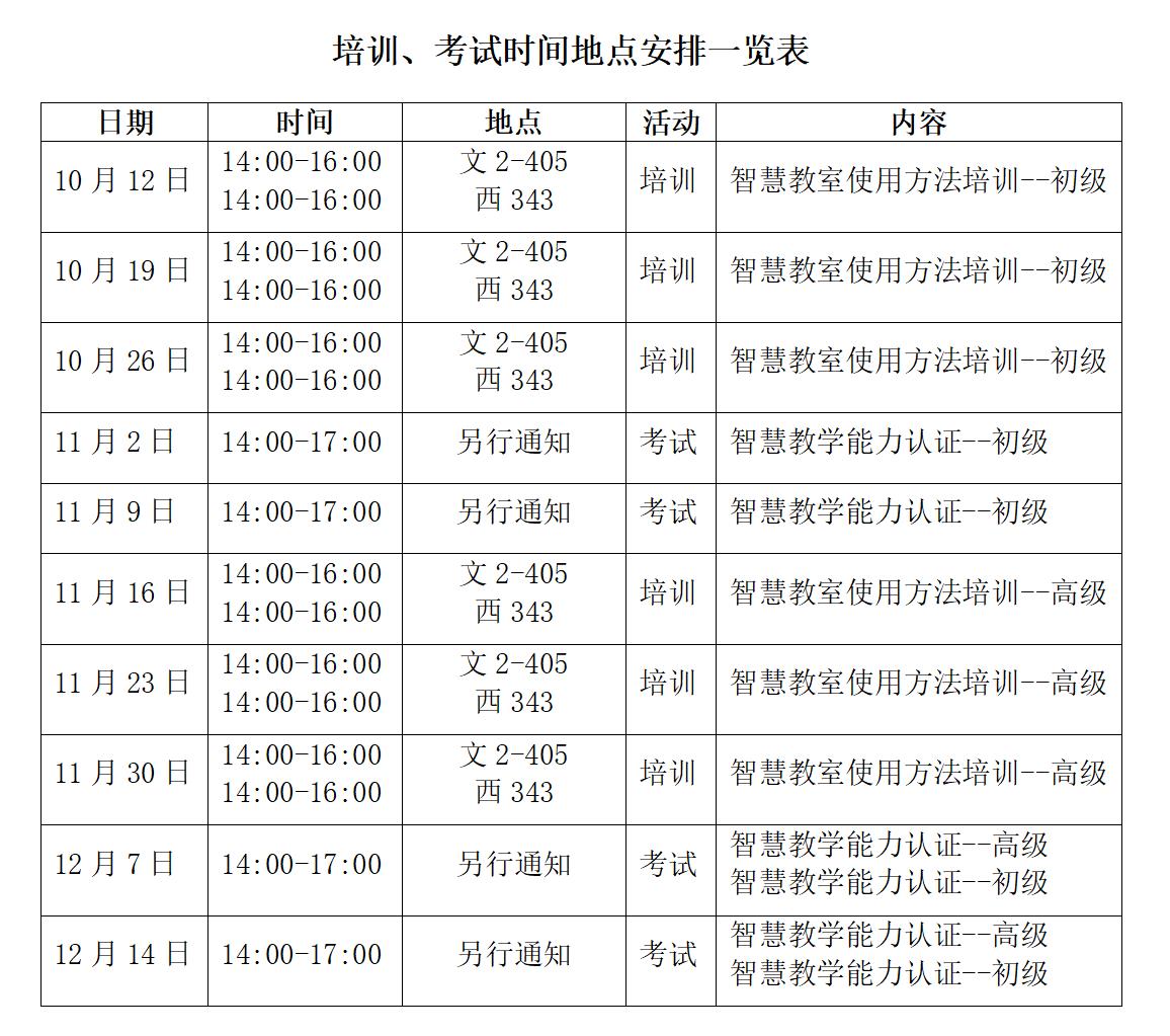 1. 全体任课教师需要参加“智慧教学能力认证(初级)”培训,“智慧教学能力认证(高级)”培训自愿参加。