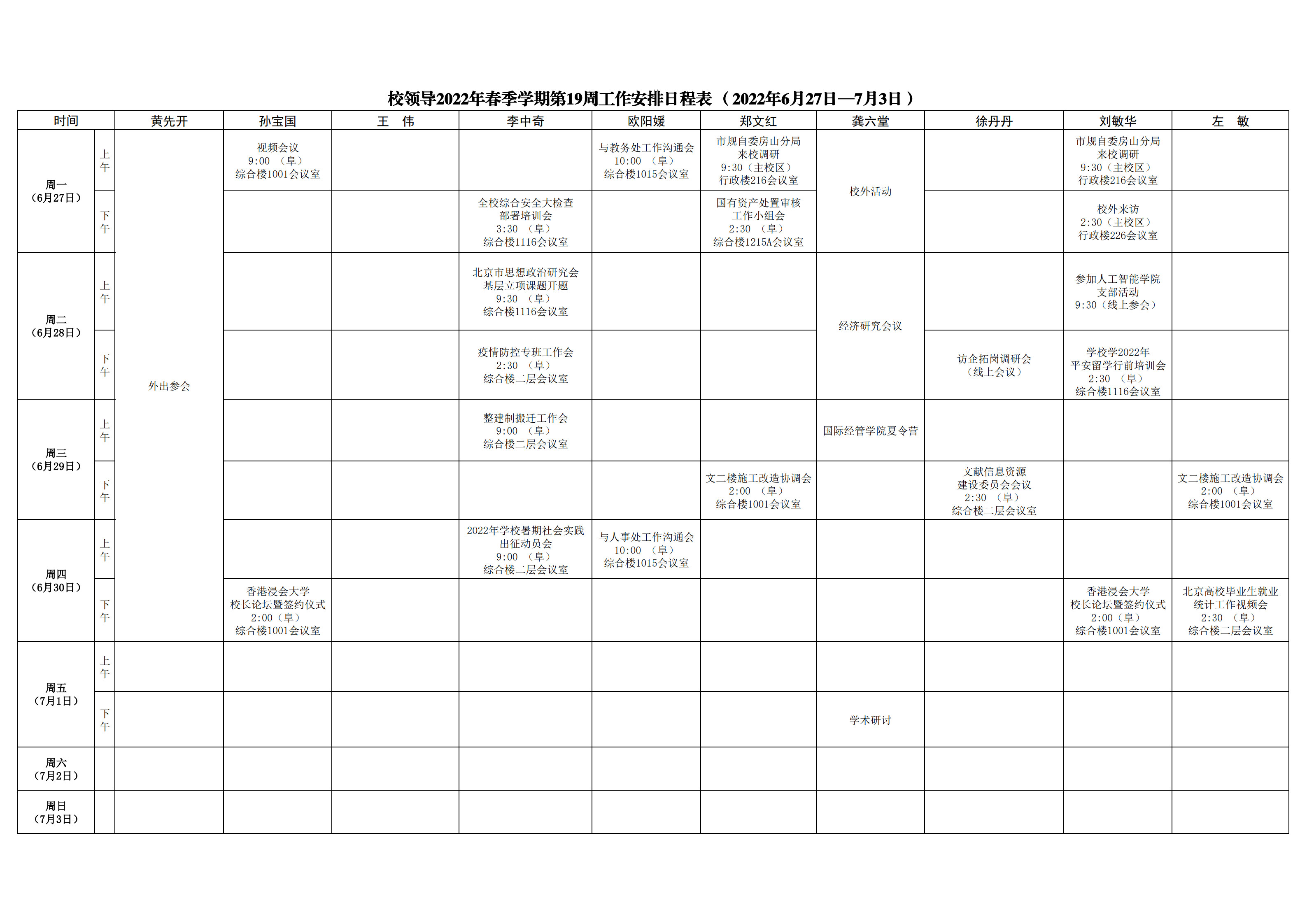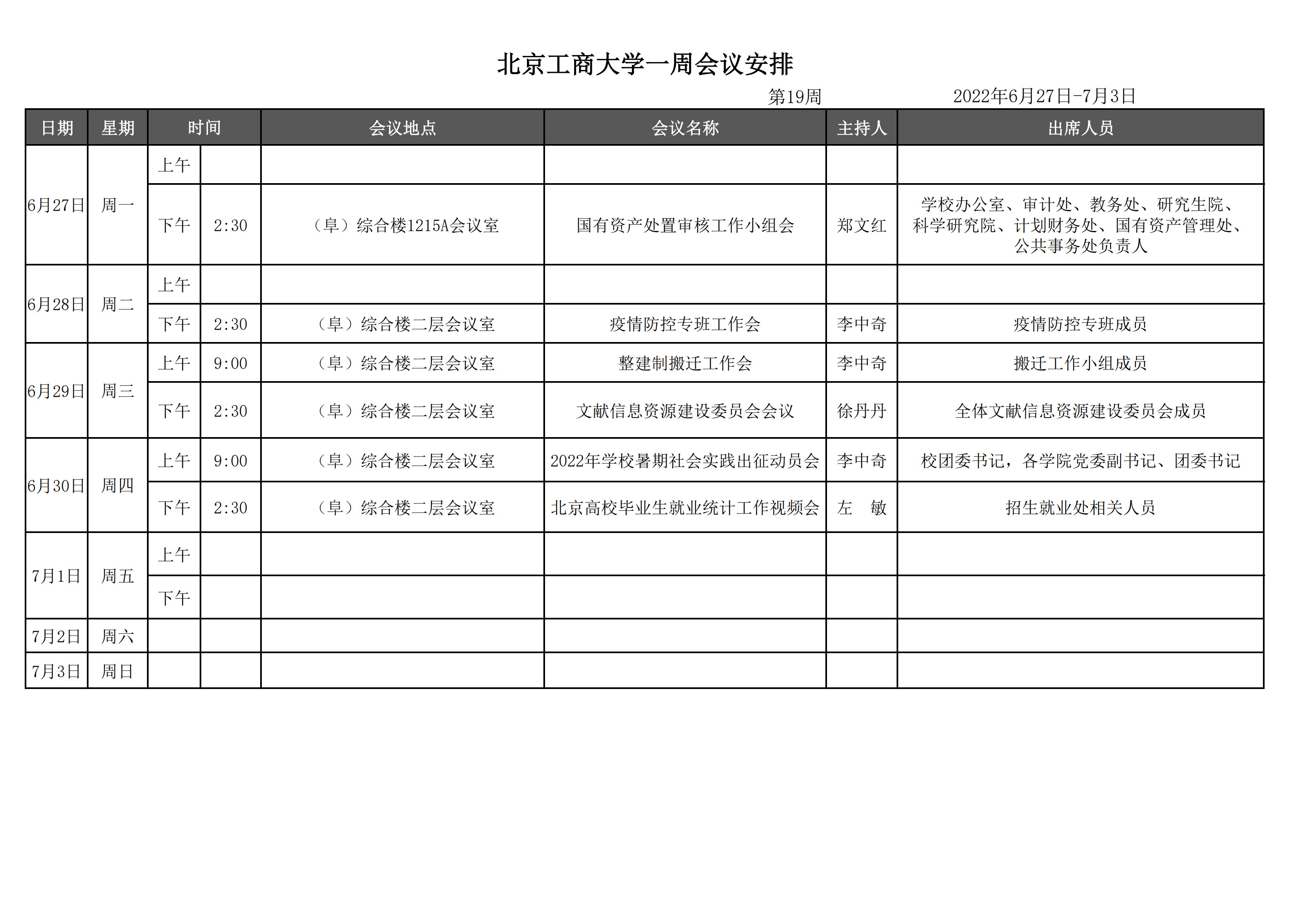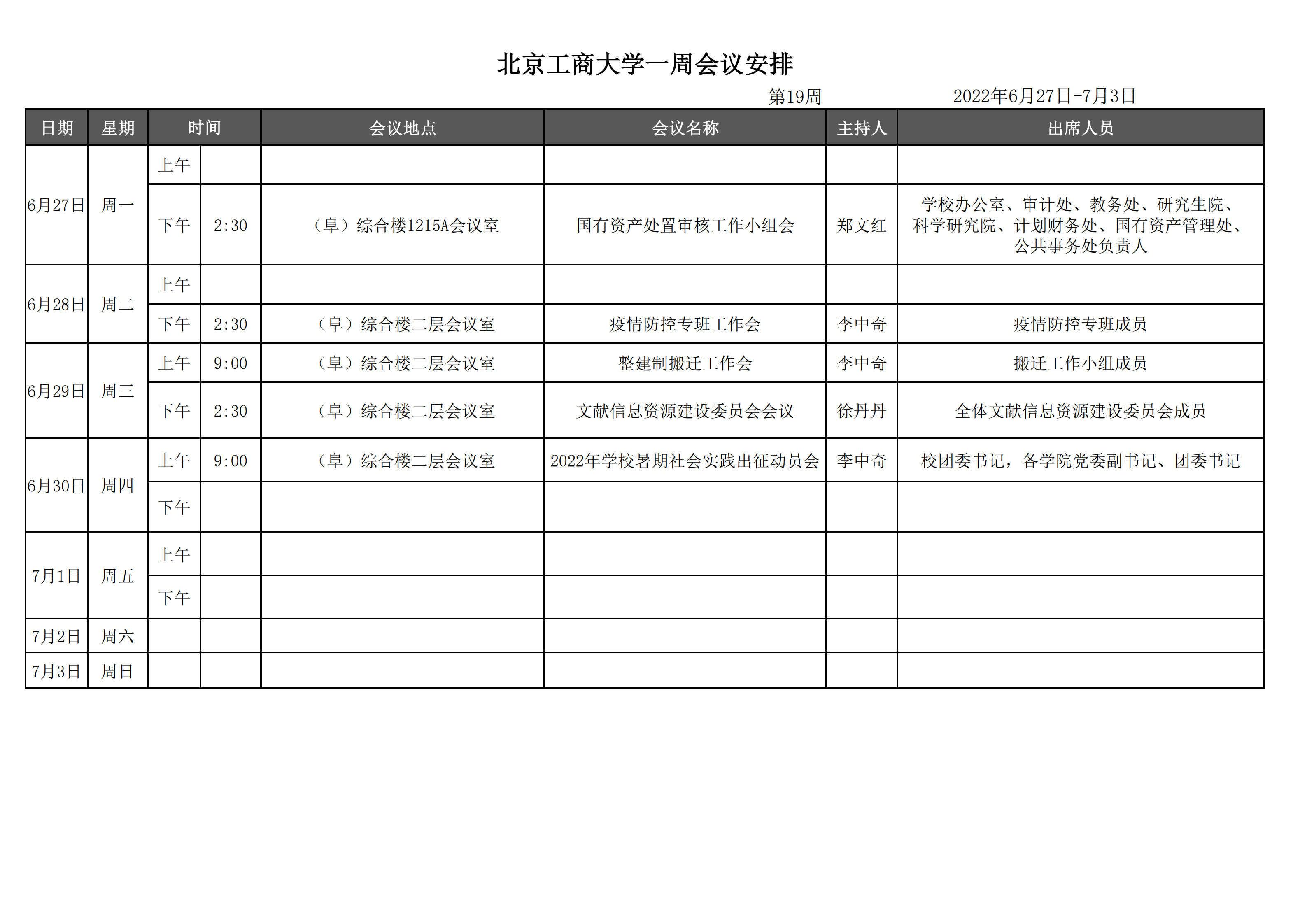 第19周会议安排