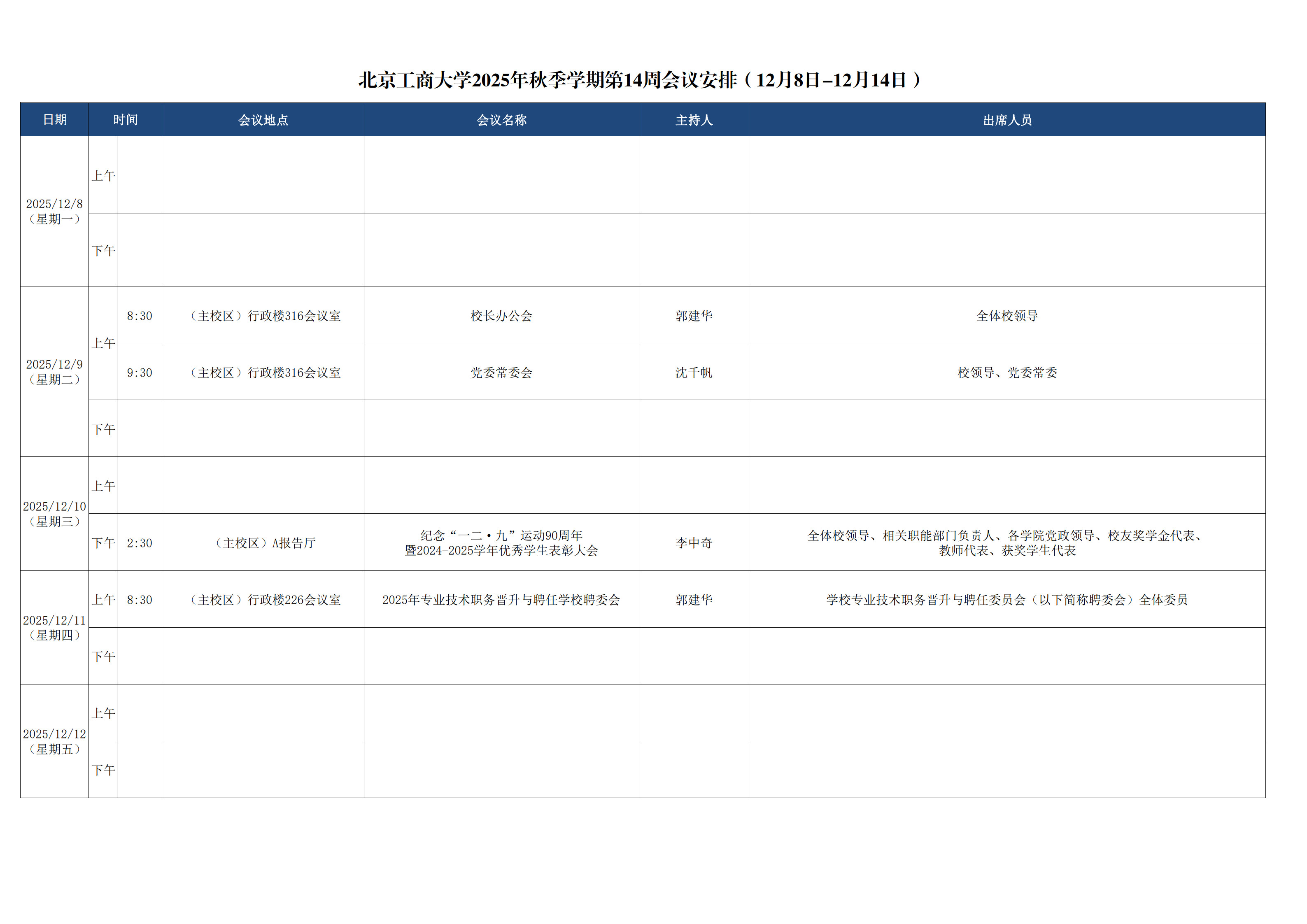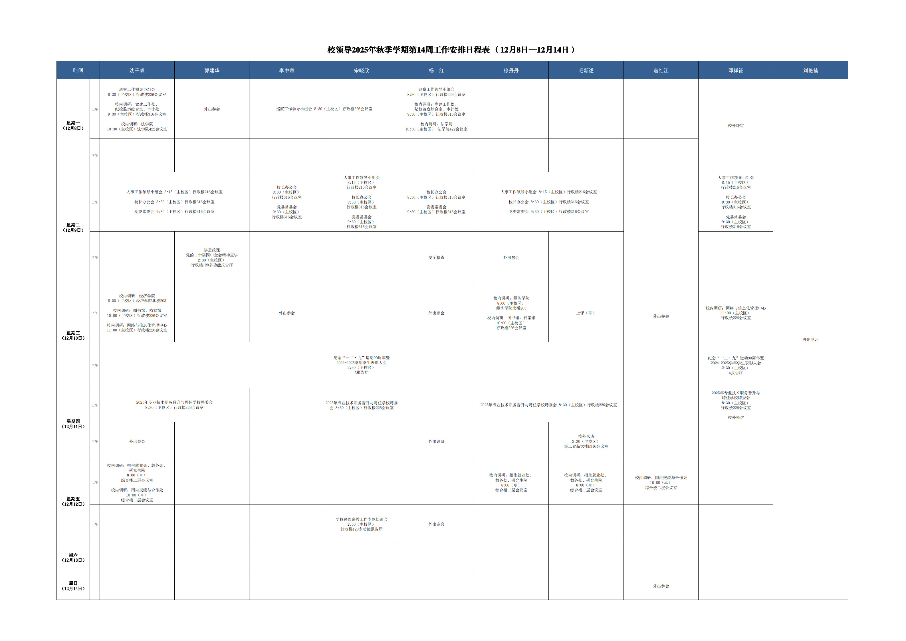 第14周会议安排