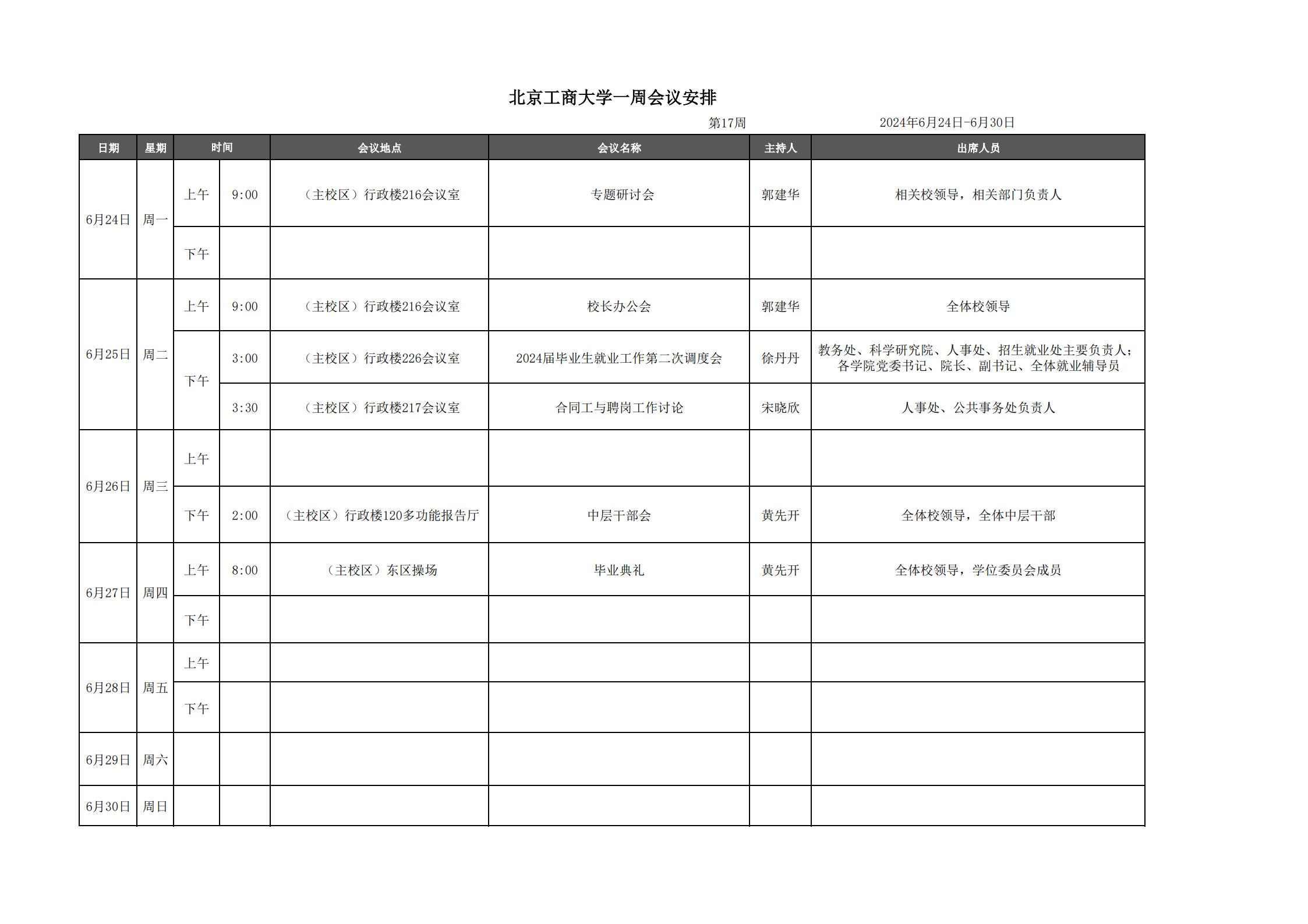 第17周会议安排