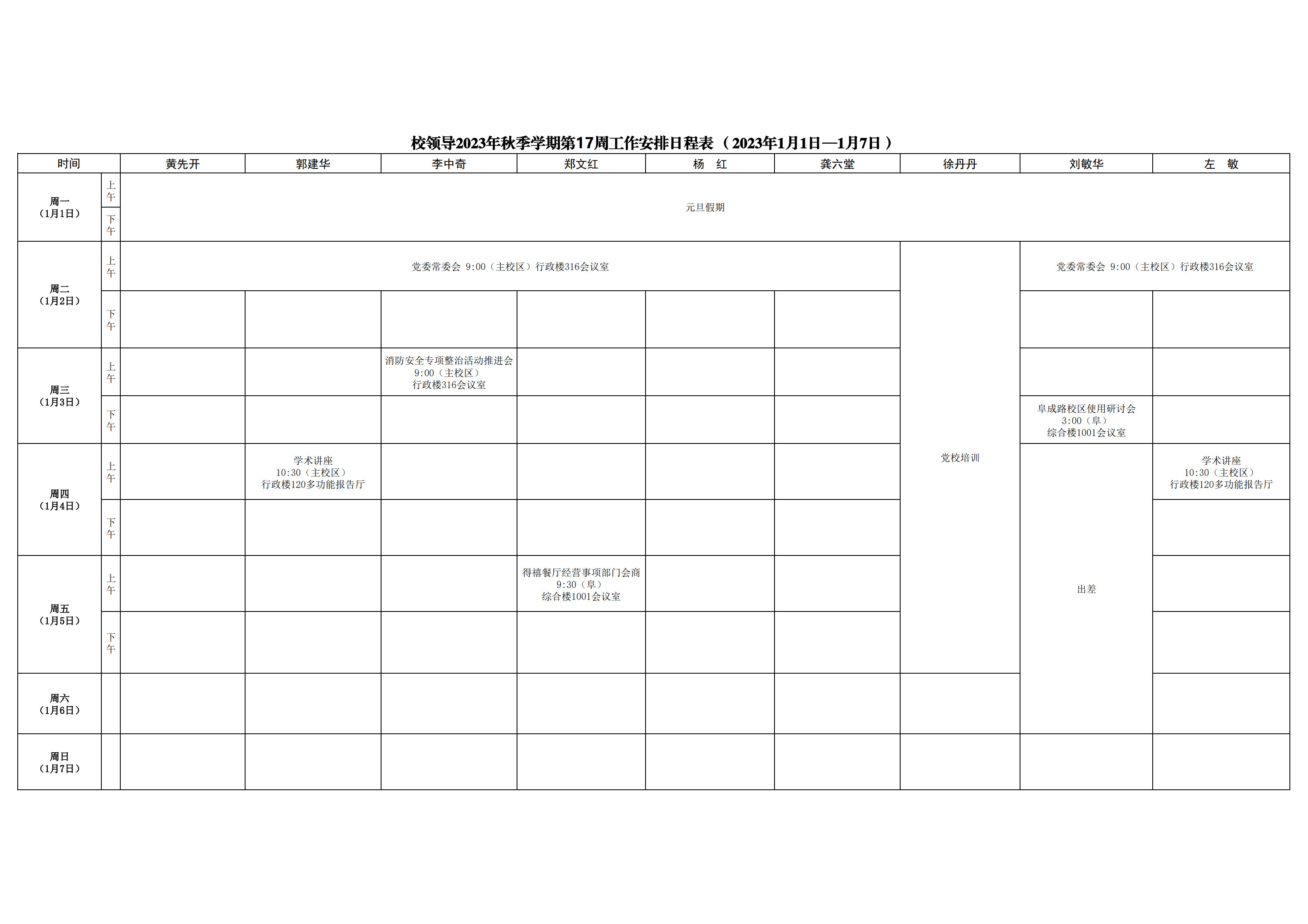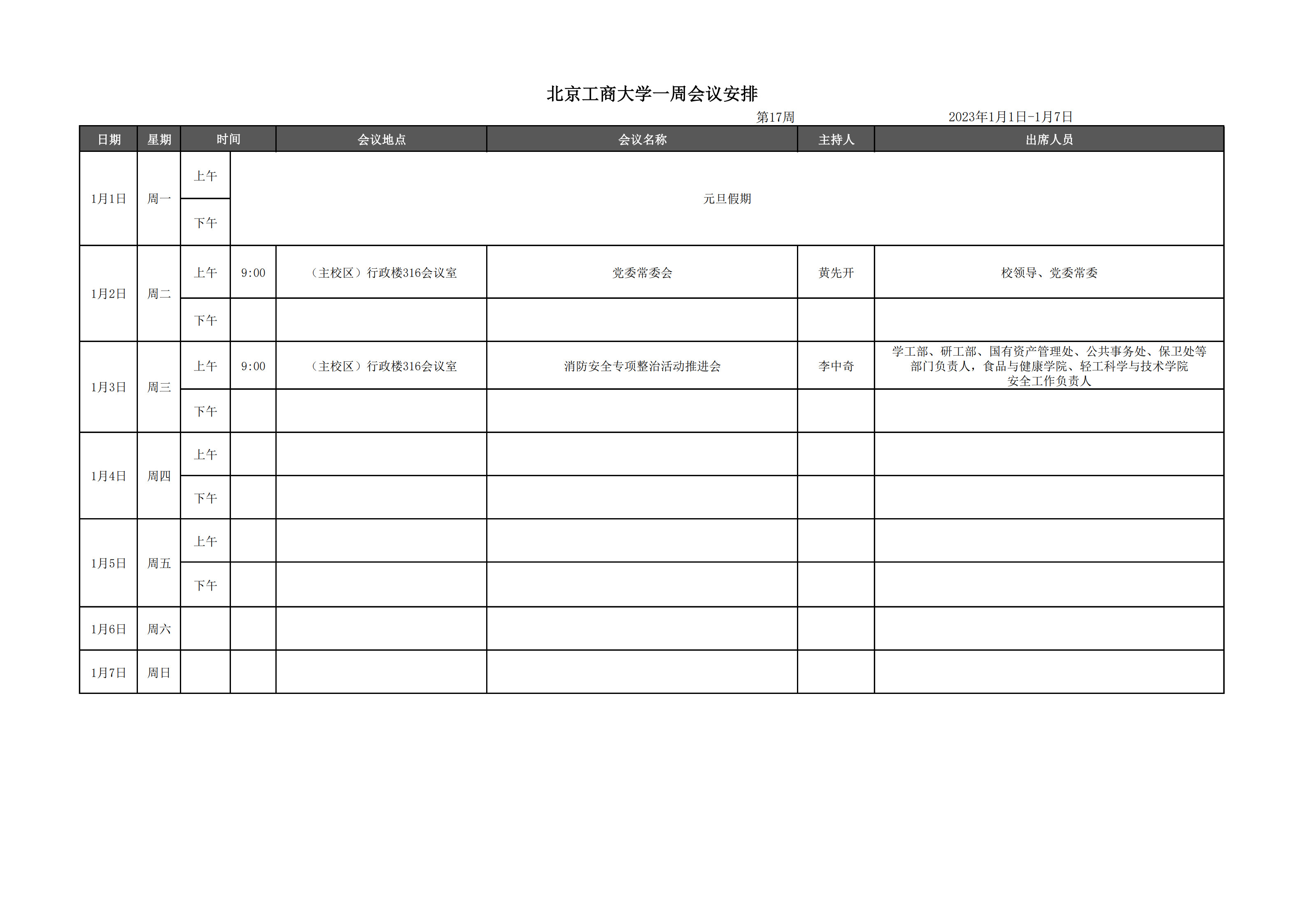第17周会议安排