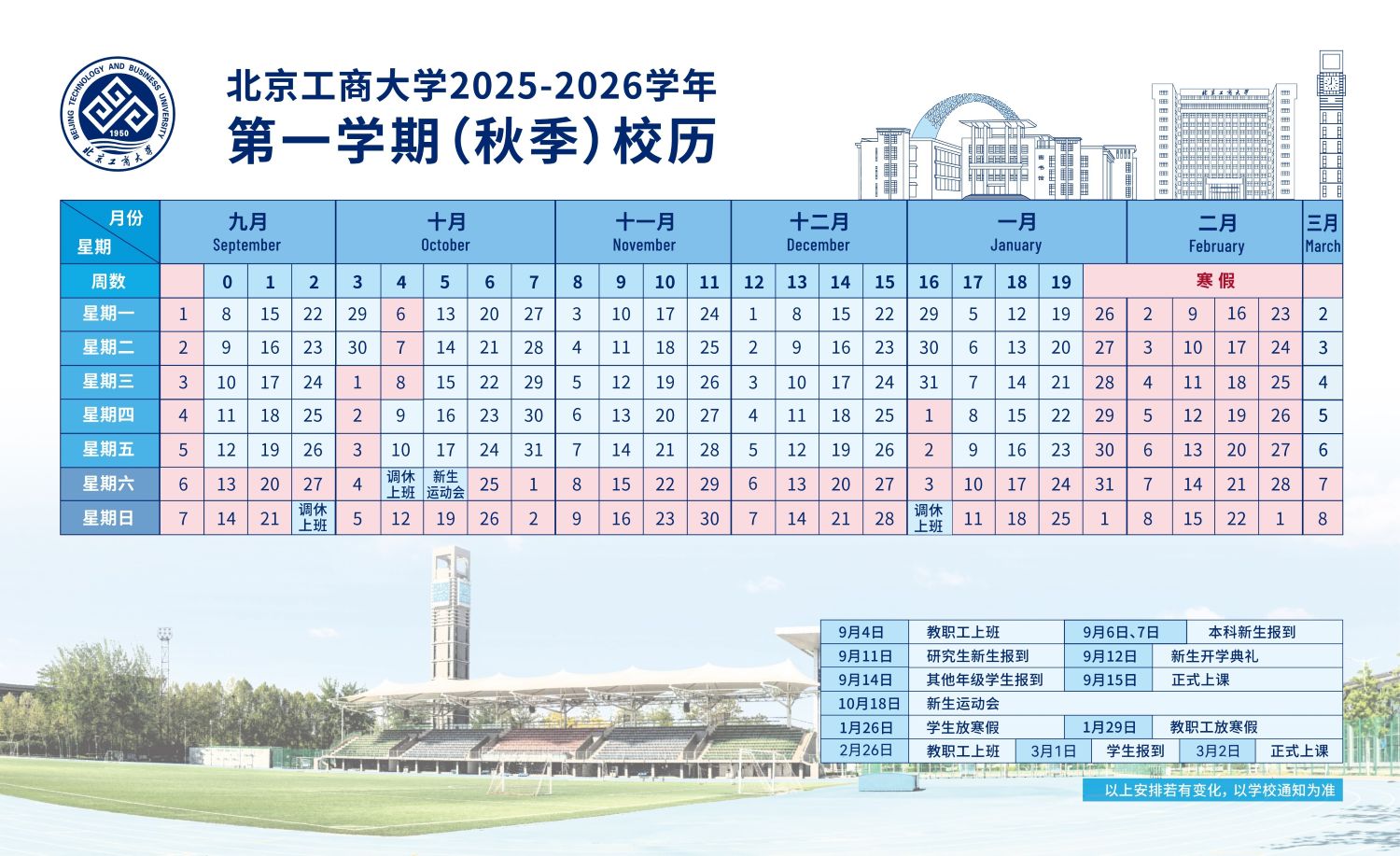 2025-2026学年第一学期(秋季)校历