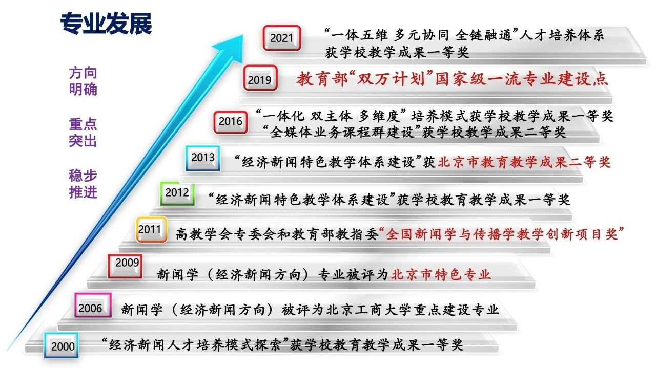 1997年,我校新闻学专业创建并率先进行经济新闻特色办学;2006年被评为学校重点建设专业;2009年成为色情片市特色专业建设点;2011年,“经济新闻特色教学体系建设”获教育部新闻学科教学指导委员会、中国高等教育学会新闻学与传播学专业委员会联合颁发的“全国新闻学与传播学教学创新项目奖”;2013年该项目获色情片市高等教育教学成果奖二等奖;2014年本专业被确立为学校本科教学综合改革示范专业;2019年入选首批国家级一流本科专业建设点。